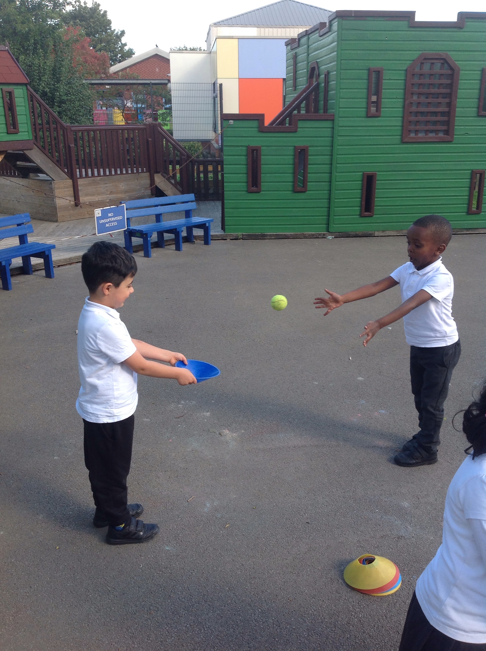 Today in PE the Innovators practised Throwing and Catching using a big and small ball.
