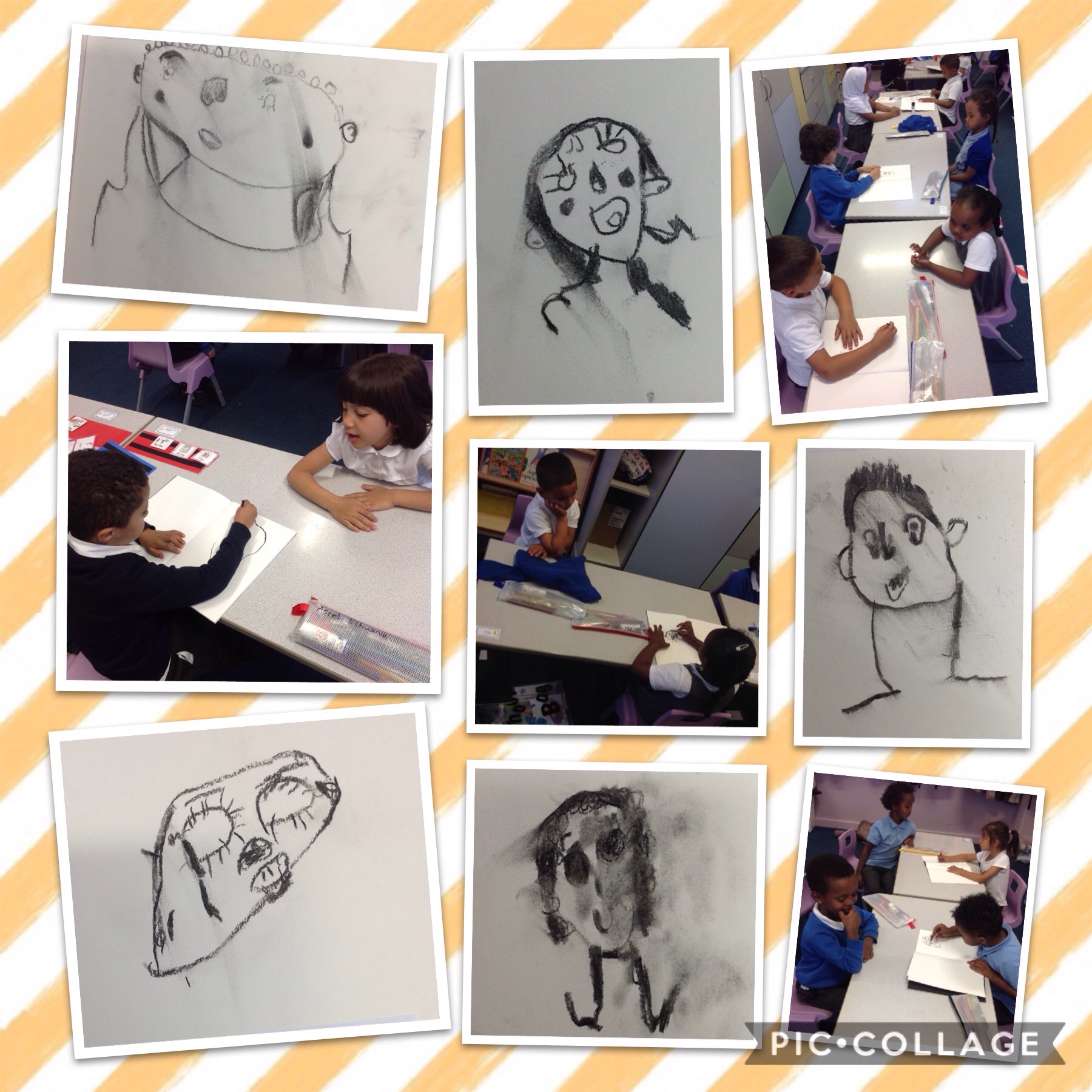 We have been practising how to create portraits. This week we used charcoal to draw our friends – they turned out great!